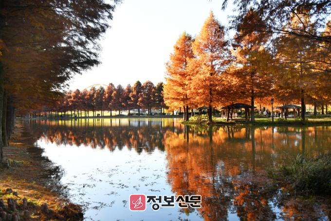 고요한 물 위에 반사된 숲의 색감까지 더해져 담양 특유의 늦가을 정취를 느끼려는 이들의 발걸음이 이어지고 있다.