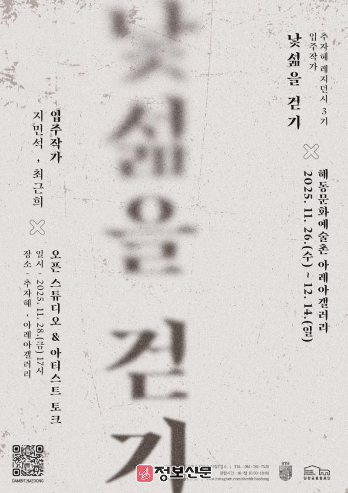 ![]() 담양군문화재단, 추자혜 레지던시 3기 입주작가 결과작품 전시 ‘낯섦을 걷기’ 개막 |
