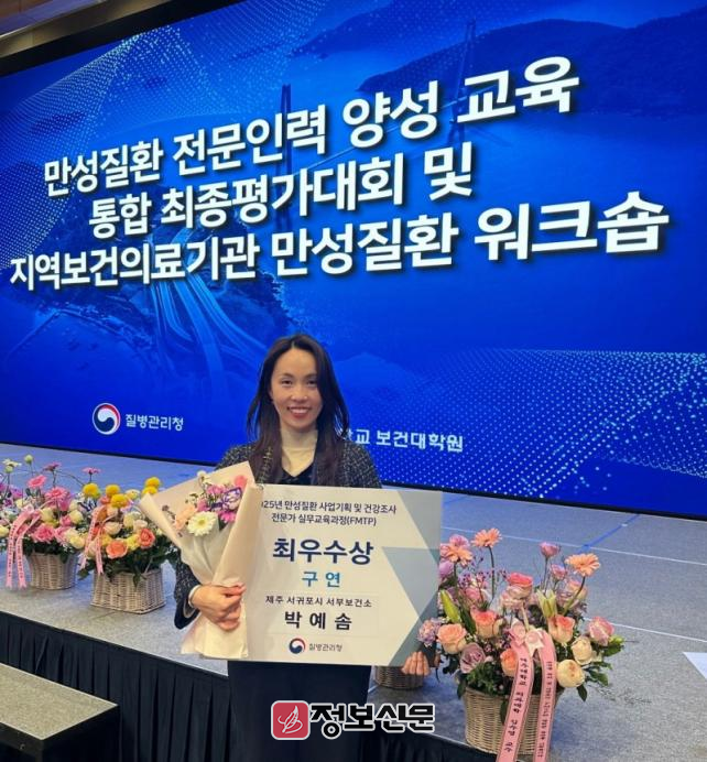 ![]() 서귀포시 서부보건소 박예솜 주무관, FMTP 최종평가대회 최우수상 수상 |
