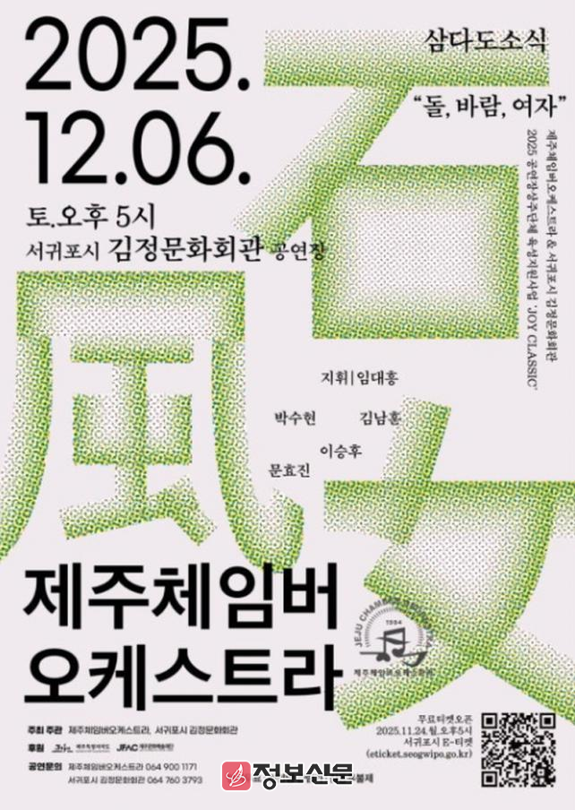 이번 공연은 2025년 김정문화회관 상주단체 육성지원사업의 마지막 무대로, 제주 지역 작곡가와 편곡가들이 참여하여 ‘제주의 돌·바람·여자’를 주제로 한 신작과 다양한 작품을 통해 제주의 자연과 삶, 그리고 사람의 이야기를 예술로 표현한 무대이다.