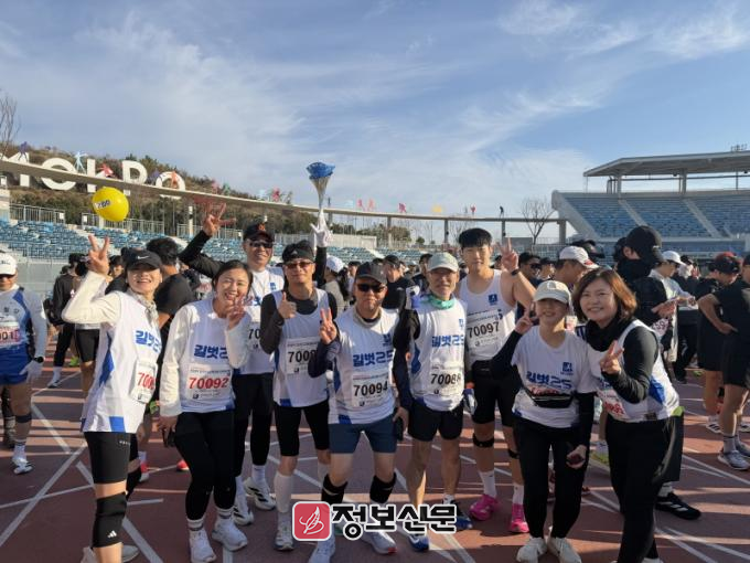 ![]() 전라남도교육청 소속 마라톤 동호회 ‘길벗 25’동호인들이 23일 열린 ‘2025 김대중마라톤대회 및 제38회 전남교육감기 마라톤 대회’에 참가해 기념사진 촬영을 하고 있다. |