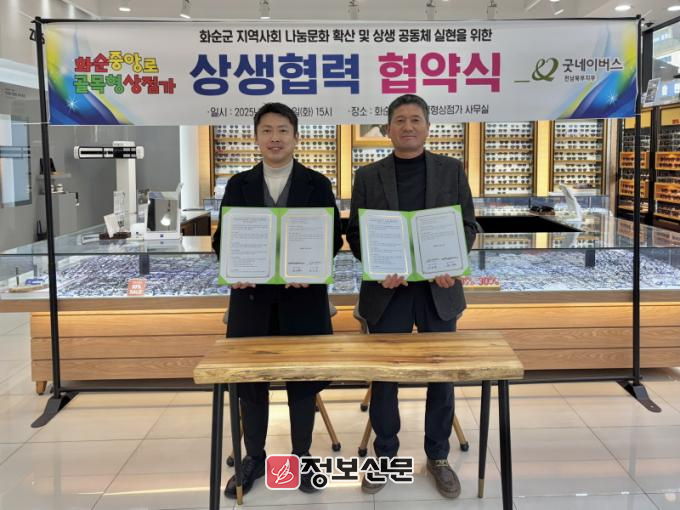 강성규 굿네이버스 전남북부지부장은 “추운 날씨 속 아동들을 위한 나눔 캠페인을 통해 따뜻한 마음을 전달해주신 화순중앙로골목형상점가분들께 정말 감사하다”라며 “이번 협약을 통해 지역사회 내 나눔 문화가 확산되고, 많은 분들이 동참하여 아동들의 권리를 보장해줄 수 있는 화순군이 되었으면 좋겠다”고 전했다.