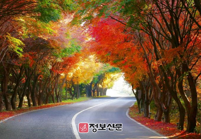 특히 진산리에서 지리까지 약 3km 도로 양쪽에 약 30년 된 단풍나무가 긴 터널을 이루고 있는데 걷기나 드라이브를 즐길 수 있는 최적의 코스다. 행사는 11월 29일과 30일 오후 12시부터 15시까지 진행되며, 29일에는 차량이 전면 통제돼 주민과 관광객이 안전하고 편안하게 단풍길을 거닐 수 있다.