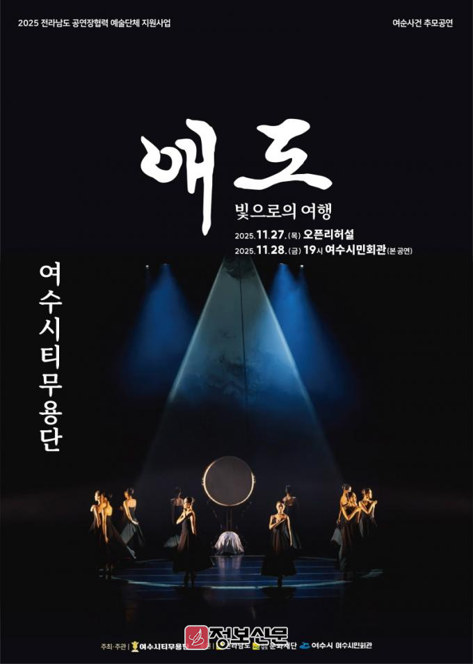 공연은 27일과 28일 양일 선착순 무료로 입장할 수 있다. 기타 공연 문의는 여수시티무용단(☎010-4043-1282)으로 하면 된다.