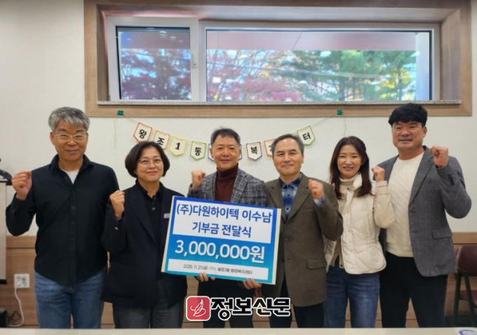 신혜정 왕조1동장은 “지역의 어려운 이웃을 위해 따뜻한 손길을 보내주신 데 깊이 감사드린다”며 “기업의 소중한 나눔이 의미 있게 쓰일 수 있도록, 도움이 절실한 가정에 신속하고 정확하게 전달하겠다”고 말했다.