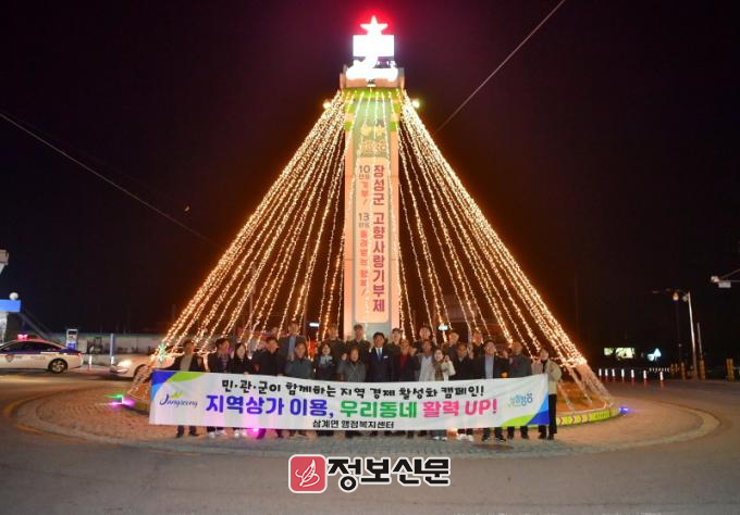 트리는 지역 사회단체들이 힘을 모아 마련했다. 삼계면 상가번영회와 체육회가 후원하고, 청년회가 설치를 맡았다.