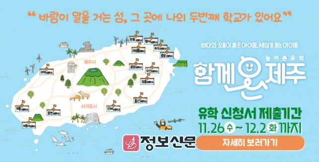 ![]() 제주특별자치도교육청, 2026학년도 1학기‘함께온제주 농어촌유학 유학생 모집 |