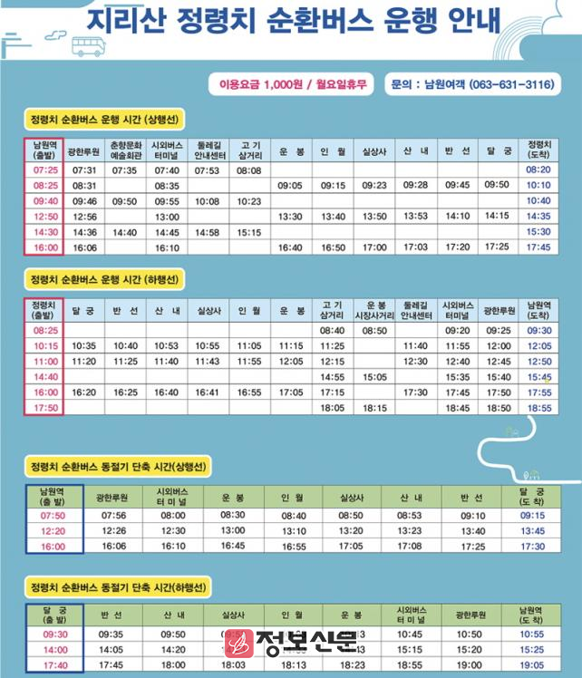 ![]() 남원시, 11월 27일부터‘정령치 순환버스’단축운행 |