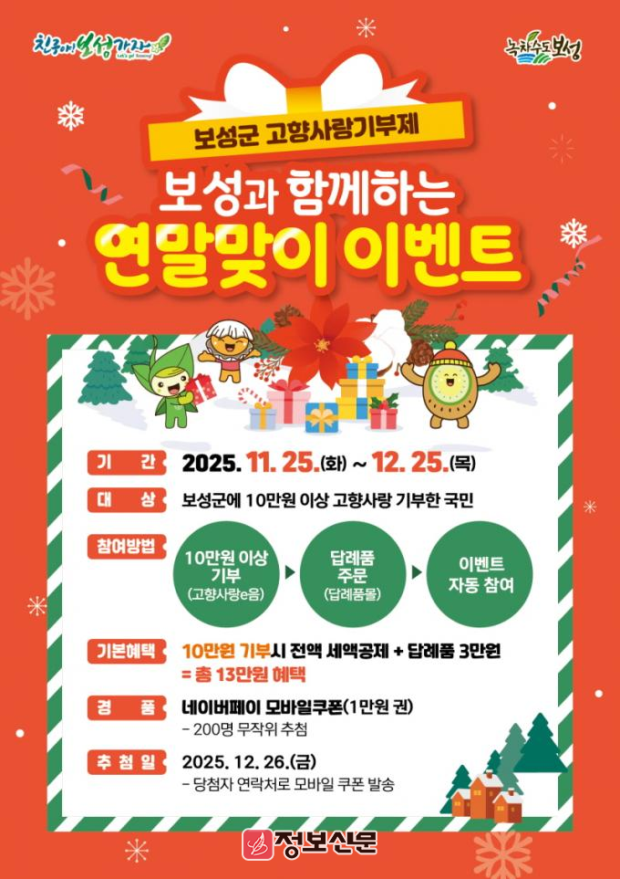 ![]() 보성군 고향사랑기부제, 연말 맞이 이벤트 추진 |