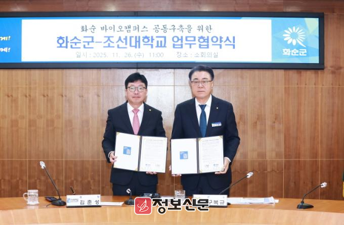 ![]() 화순군, 조선대학교와 ‘화순 바이오캠퍼스 구축’ 업무협약 체결 |