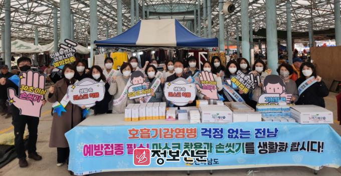 이에 전남도와 무안군보건소 등 50여 명은 26일 일로시장 일원에서 시장 방문객을 대상으로 예방접종 독려와 마스크 등 예방 물품을 나눠주며 독감 확산 방지 캠페인을 벌였다. 특히 예방접종 독려, 호흡기감염병 예방수칙, 의료기관과 마트, 학원 등 다중이용시설 방문 시 마스크 착용을 적극 홍보했다.