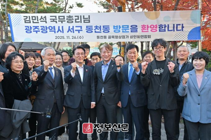 ![]() 서구는 26일 김민석 국무총리가 동천동 골목형상점가를 방문해 ‘골목경제119 프로젝트’ 추진 현황을 직접 점검하고 상인‧주민들과 소통하는 자리를 가졌다고 밝혔다. 광주·전남사진기자단 제공