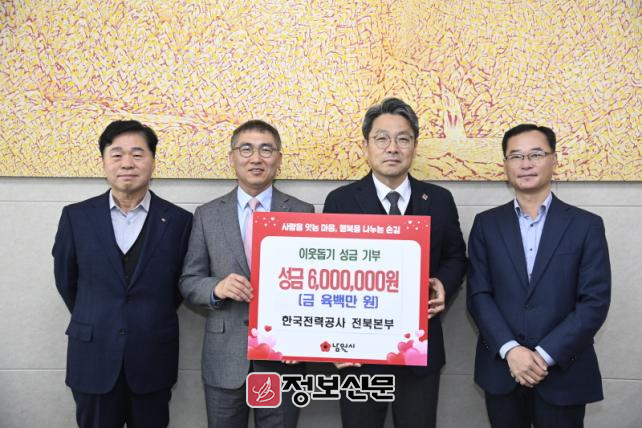 ![]() 한국전력공사 전북지역본부, 남원시에 이웃돕기 성금 기부 |