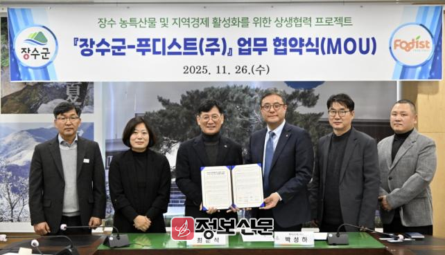 이날 협약식에는 최훈식 장수군수를 비롯해 푸디스트 주요 실무·책임자가 참석해 군 농특산물·레드푸드 판로 확대와 지역 일자리, 축제 홍보, 사회공헌으로 이어지는 다양한 협력 의지를 공유했다.