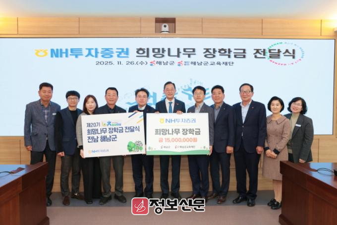 명현관 군수는“NH투자증권의 지역 인재 양성을 위한 관심과 지원에 진심으로 감사드린다”며“이번에 전달받은 장학금을 통해 어려운 환경 속에서도 학업에 정진하는 우리 해남군 학생들에게 큰 힘이 되고, 미래를 향한 희망의 씨앗이 될 것이다”고
