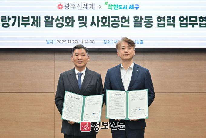 협약에 따라 ▲㈜광주신세계는 임직원을 대상으로 고향사랑기부제 안내 및 참여를 독려하고 ▲서구는 답례품 품목 확대와 함께 기부자 혜택 정보에 대한 접근성과 시인성을 높여 기부 참여를 유도할 계획이다. 아울러 양 기관은 지역사회 상생을 위한 사회공헌 프로그램도 공동으로 발굴‧추진한다.