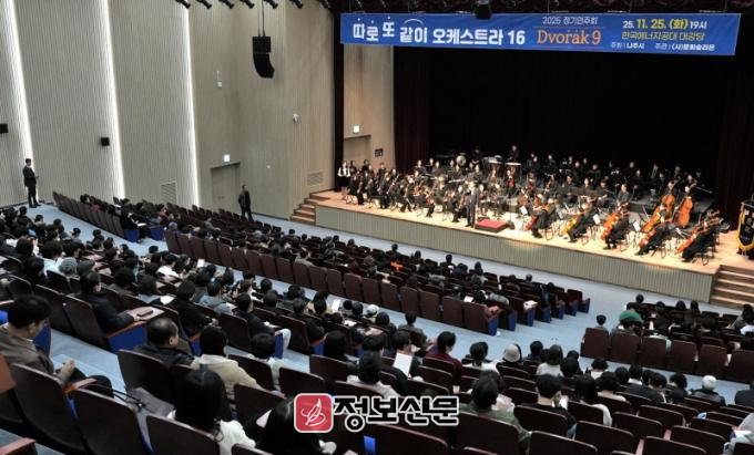 나주시(시장 윤병태)는 지난 25일 오후 7시 한국에너지공과대학교 대강당에서 ‘2025 따로 또 같이 오케스트라 16’ 연주회 ‘드보락 9’(DVORAK 9)를 성황리에 마쳤다고 밝혔다.