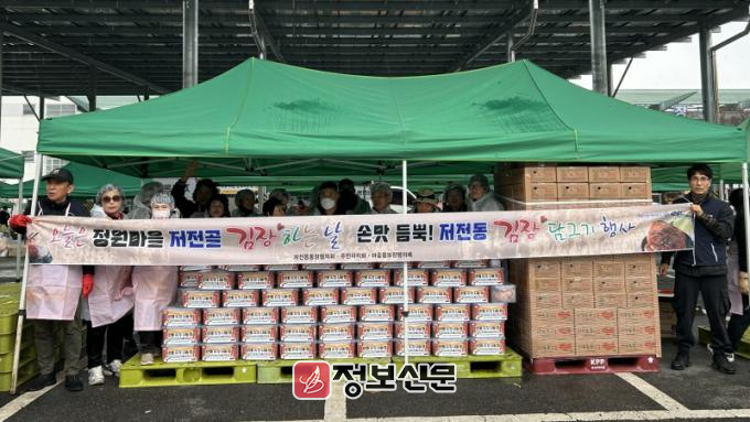 이번 행사는 저전동 2025년 주민참여예산사업으로 추진됐으며, 농산물도매시장 유통종사자(법인, 중도매인협의회)에서 절임 배추와 양념, 귤 150박스를 후원해 더욱 풍성한 나눔으로 이어졌다.