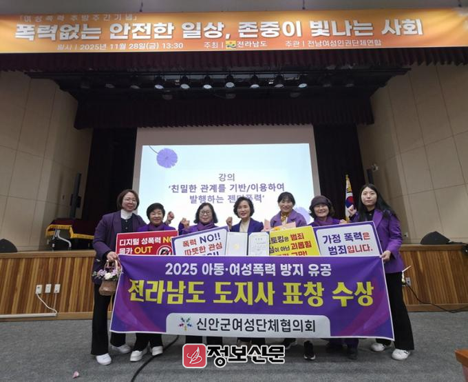 ![]() 신안군여성단체협의회, 2025 여성폭력추방주간 유공 ‘전남도지사 표창’ 수상 영예 |