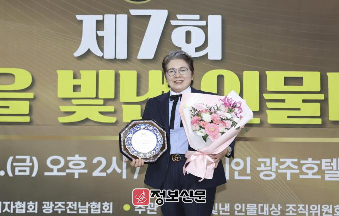![]() ▲ 11월 28일 광주 서구 홀리데이 인 광주호텔 2층 연회장에서 열린 ‘2025년 제7회 호남을 빛낸 인물대상’ 시상식에서, 효행부문 ‘효행’대상을 수상한 김인숙 이미지스튜디오 대표 |