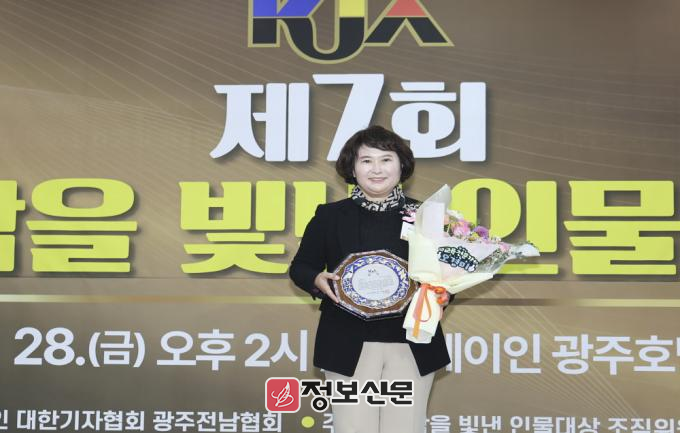 ![]() ▲ 11월 28일 광주 서구 홀리데이 인 광주호텔 2층 연회장에서 열린 ‘2025년 제7회 호남을 빛낸 인물대상’ 시상식에서, 교육부문 ‘교육’대상을 수상한 오경미 광주교육발전포럼 대표 |