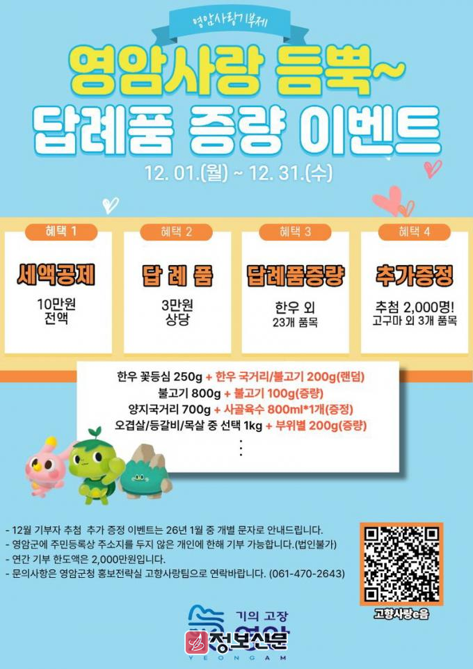 ![]() 영암군, 고향사랑기부자 감사 이벤트 진행 |