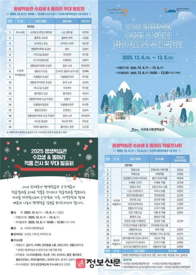 ![]() 서귀포시, 2025년 평생학습관 수강생 작품 전시·발표회 개최 |
