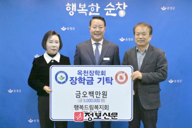 ![]() (사)행복드림복지회 김선례 대표, 순창군옥천장학회에 장학금 500만원 기탁 |