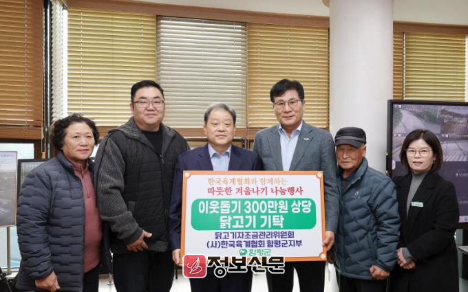 함평군(군수 이상익) 1일 “사)한국육계협회 함평군지부(지부장 정성호)가 지난달 26일 소외계층을 위해 약 300만 원 상당의 닭고기를 기부했다”고 밝혔다.