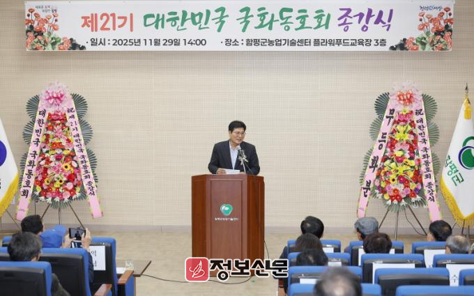 함평군은 1일 “대한민국 국화동호회(회장 김행민)가 지난달 29일 함평군 농업기술센터에서 2025년 국화동호회 활동을 마무리하며 종강식을 성황리에 개최했다”고 밝혔다.