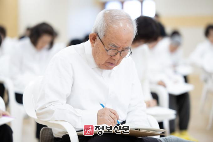시작 구령과 함께 배포된 시험지를 앞에 둔 성도들은 필기구를 손에 쥐고 호흡을 가다듬으며 일제히 답을 써 내려갔다. 조용한 가운데서도 긴장감이 감도는 시험장에는 종이 위를 스치는 필기구 소리가 공간을 채웠다.
