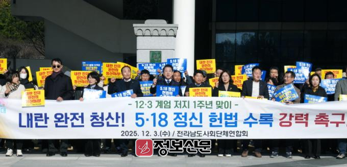 ![]() 전남사회단체연합회, 비상계엄 1주년 맞이, 내란 청산·5·18 정신 헌법수록 강력 촉구 |