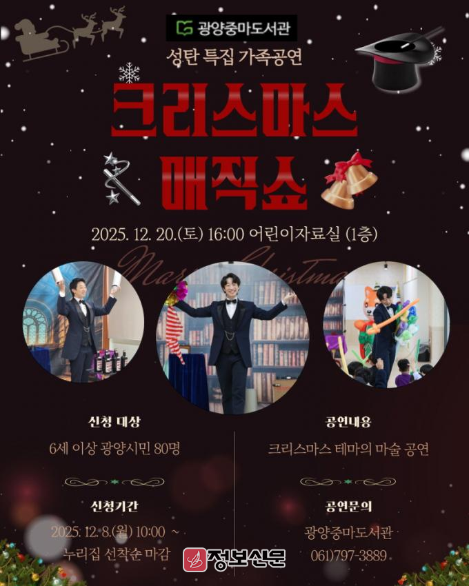 ![]() 광양중마도서관, 성탄 특집 ‘크리스마스 매직쇼’ 공연 개최 |