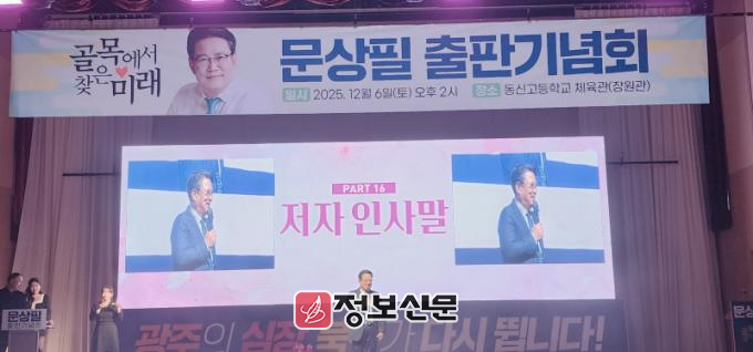 문 부대변인은 지난 6일 광주 동신고 체육관에서 자신의 저서 ‘골목에서 찾은 미래’ 출판기념회에 3,000여 명의 지역 인사와 지지자들이 몰려 성황리에 마쳤다고 7일 밝혔다.