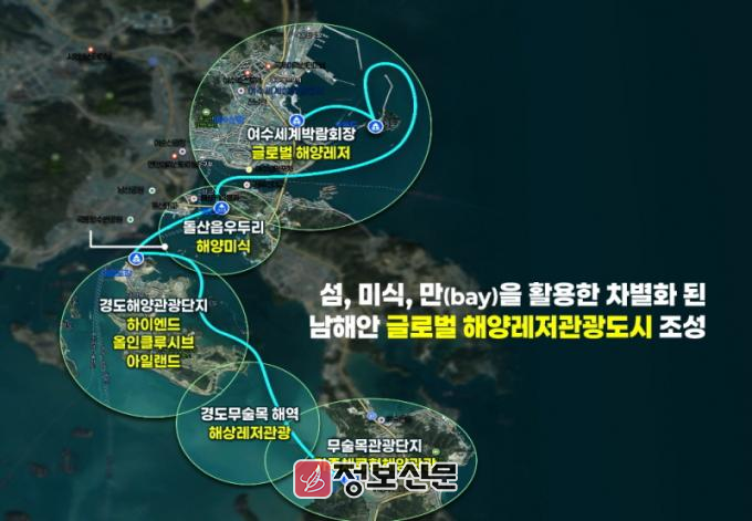 이에 전남도와 여수시는 무술목, 경도, 돌산 우두, 여수세계박람회장 일원100만 평에 총 1조 980억 원(민간 8천980억 원·국비 1천억 원·지방비 1천억 원)을 투입해 아쿠아마린파크, 플로팅 웰니스파크, 복합크루즈 환승센터, 스마트해양레저지원센터, 호텔·콘도 등 관광형 숙박시설 등을 건립하는 사업계획을 마련하고 공모에 참여했다.