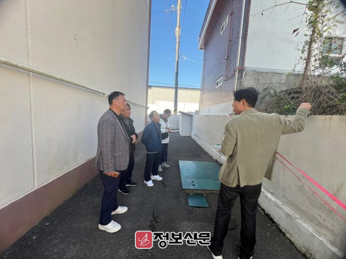 ![]() ▲ 여수시가 지난 10월 31일 연등동 삼송아파트 일원에서 안전관리자문단과 함께 담장을 점검하고 있다. |