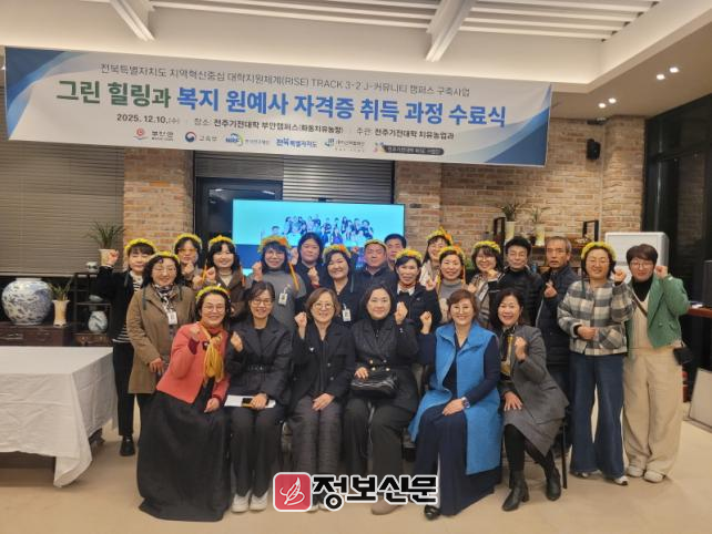 전주기전대학 치유농업과 최연우 교수는 “바쁜 일상 속에서도 90시간의 교육을 끝까지 완주한 학습자들의 열정에 깊은 인상을 받았다”며 “이번에 배출된 복지원예사들이 부안형 치유농업과 복지 서비스를 이끄는 핵심 인력으로 성장하길 기대한다”고 밝혔다.
