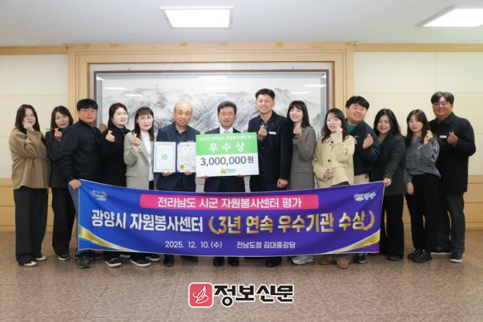 ![]() 광양시, 전라남도 자원봉사센터 평가 ‘3년 연속 우수기관’선정 |