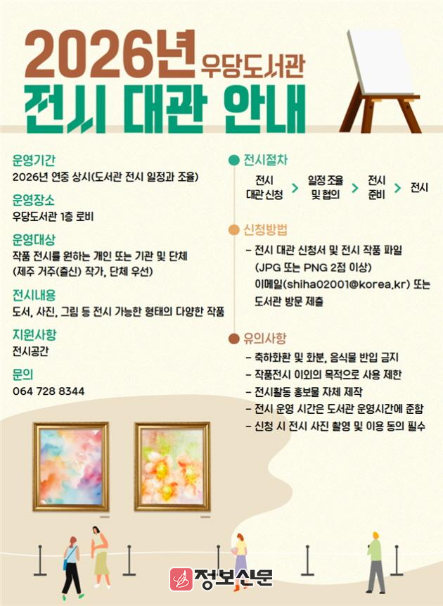 자세한 사항은 제주도공공도서관 누리집(https://www.jeju.go.kr/lib/), 책섬 제주 누리집(http://woodang.jejusi.go.kr/), 우당도서관 인스타그램(https://www.instagram.com/woodanglib/)에서 확인할 수 있으며, 기타 문의는 우당도서관(☎064-728-8344)으로 하면 된다.