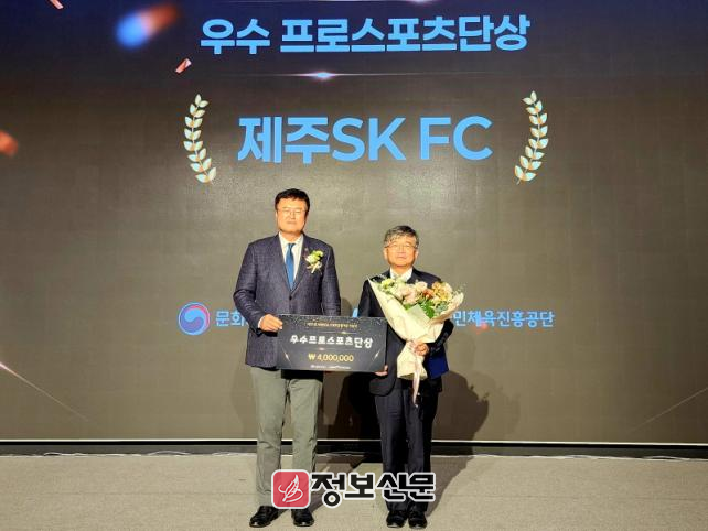 제주SK는 우수프로스포츠단 부문 문체부 장관 표창을 수상했다. 제주SK는 지역 가치와 환경‧사회‧투명 경영(ESG)을 접목한 프로스포츠 운영의 모범 사례를 보여줬다. 지역사회를 배경으로 한 독창적인 선수 영입 오피셜 사진으로 ‘오피셜 혁명’을 선도하고, 폐플라스틱 원사를 활용한 친환경 유니폼에 지역 스토리를 더한 발매, 제주 4·3 추모 동백 패치 유니폼 등 스페셜 유니폼을 통해 지역사회 가치 상생에 기여한 공적을 인정받았다.