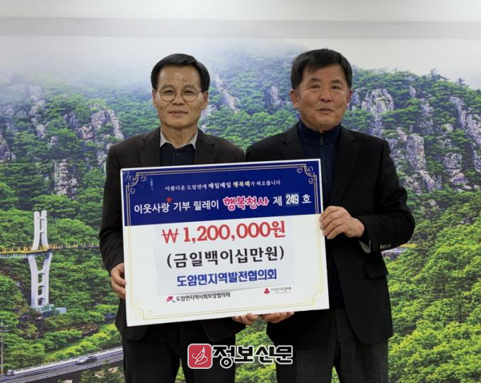 도암면 지역발전협의회는 이번 행복나눔 릴레이를 통해 120만원의 성금을 기탁했다. 후원금은 관내 취약계층과 복지 사각지대 주민을 위한 도암면 지역사회보장협의체의 다양한 사업에 사용될 예정이다.