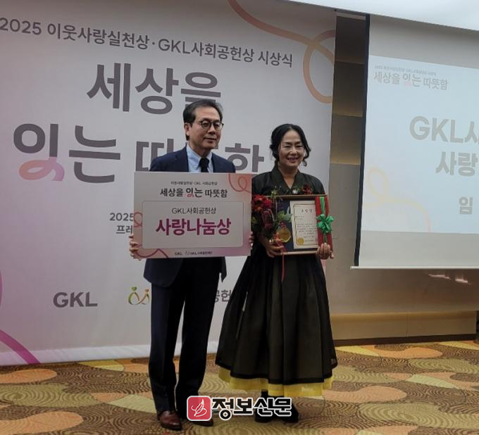 [사진설명] 지난 12일 서울 프레지던트 호텔에서 개최된‘2025년 이웃사랑실천상·GKL사회공헌상’ 시상식에서 ‘사랑나눔상’을 받은 곡성군 뚝방마켓 임원자 대표