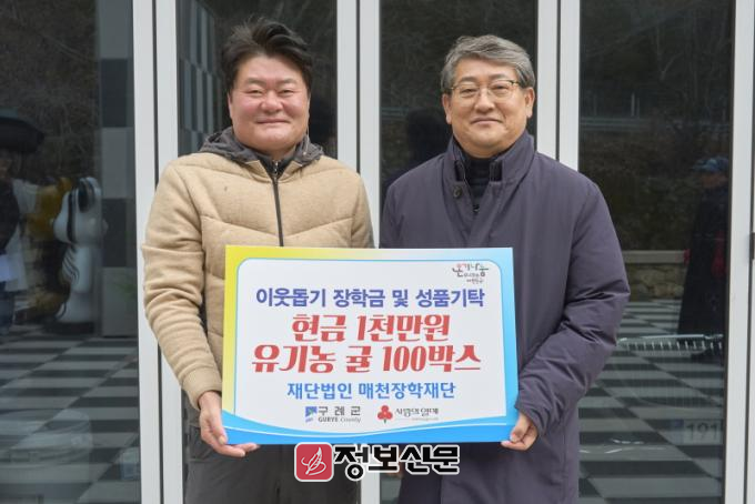 ![]() (재)매천장학재단 연말 이웃돕기 장학금 1천만원 및 유기농 귤 100박스 기탁 |