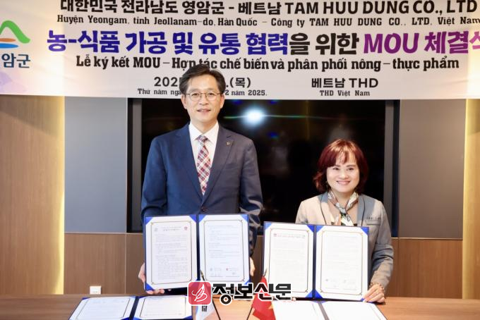 영암군(군수 우승희)이 9~12일 베트남에서 다낭시 하이반구인민위원회와 ‘영암군-다낭시 우호교류 협력 강화 실무협의’를 진행하고, 하노이 유통기업 THD(Tham Huu Dung Co., Ltd.)와 ‘농·식품 가공 및 유통협력 업무협약’을 체결했다.
