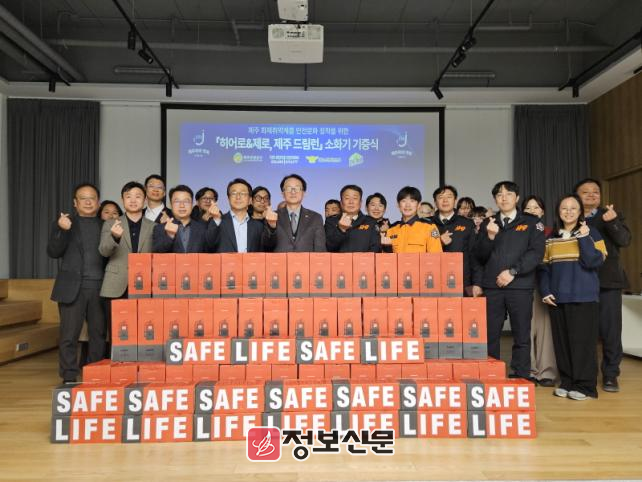 이번 소화기 기증은 지난 11월 제주 한 바퀴 릴레이 런(RUN) 형태로 개최된 ‘히어로&제로, 제주 드림런’에서 조성된 기부금을 통해 마련된 것으로, 제주드림타워의 후원과 드림런 참가자 200명의 기부 참여가 더해졌다.