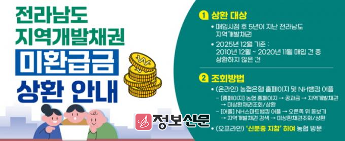 ![]() 전라남도, 지역개발채권 미환급금 일제상환 기간 운영 |