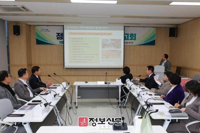 보고회에서는 ▲전남 지역의 목재 생산·이용 현황 및 목재문화지수 분석 ▲국내외 목재문화 및 교육 우수사례 조사 ▲‘삶의 가치를 높이는 목재문화의 중심, 전라남도’ 비전 및 전략 수립 ▲목재문화·교육·산업 분야별 세부 진흥방안 ▲관련 조례 개정안 등이 주요 내용으로 다뤄졌다.