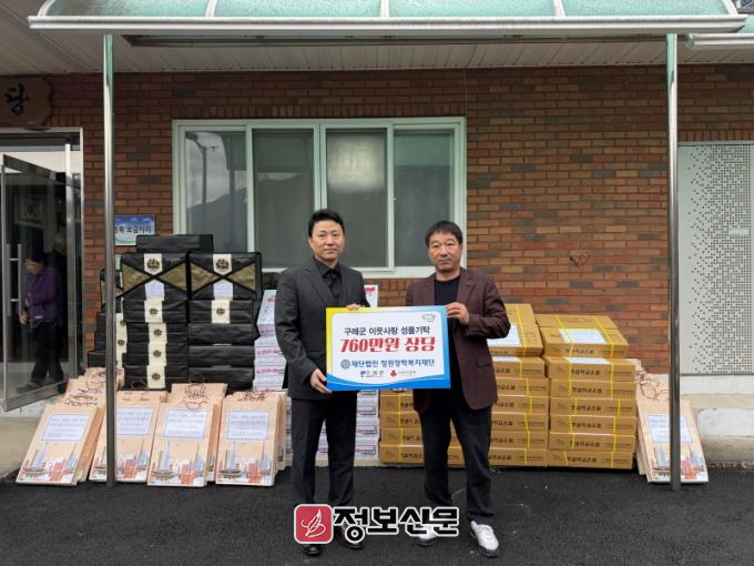 김순호 구례군수는 “매년 잊지 않고 소중한 마음을 전해주셔서 깊이 감사드린다”며 “재단에서 보내주신 후원 물품은 꼭 필요한 가정에 신속히 전달해 따뜻한 연말을 보낼 수 있도록 하겠다”고 말했다.