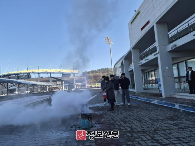 이번 훈련은 직장 자위소방대(스포츠산업단 직원)를 중심으로 진행되었으며 ▲자위소방대 조직 및 역할에 따른 임무 숙지 ▲소방시스템 운영방법에 대한 이론교육 ▲소화설비를 활용한 화재진압까지 단계별로 진행됐다.