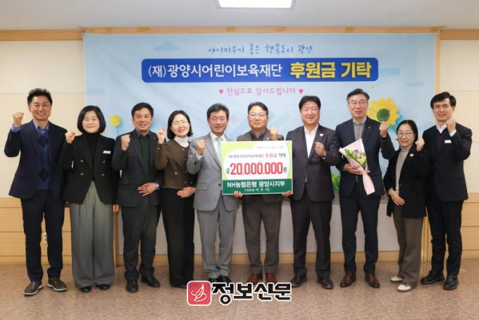 광양시 관계자는 “오랜 기간 한결같은 마음으로 지역 아이들을 위해 따뜻한 나눔을 실천해 주신 NH농협 광양시지부에 진심으로 감사드린다”며 “이번 기부는 단순한 후원을 넘어 아이 키우기 좋은 광양을 함께 만들어 가겠다는 지역사회의 굳은 약속이자 큰 응원”이라고 강조했다.